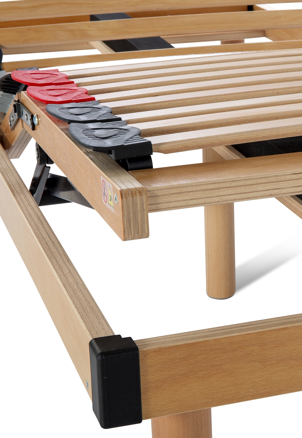 Doghe sostenute da una schiuma ad alta densità quando la rete è in posizione di riposo. Sostegno delle doghe allungate: I giunti flessori inclinabili, aiuta tutte le doghe a garantire un molleggio ideale, interagendo attivamente alle sollecitazioni del materasso.