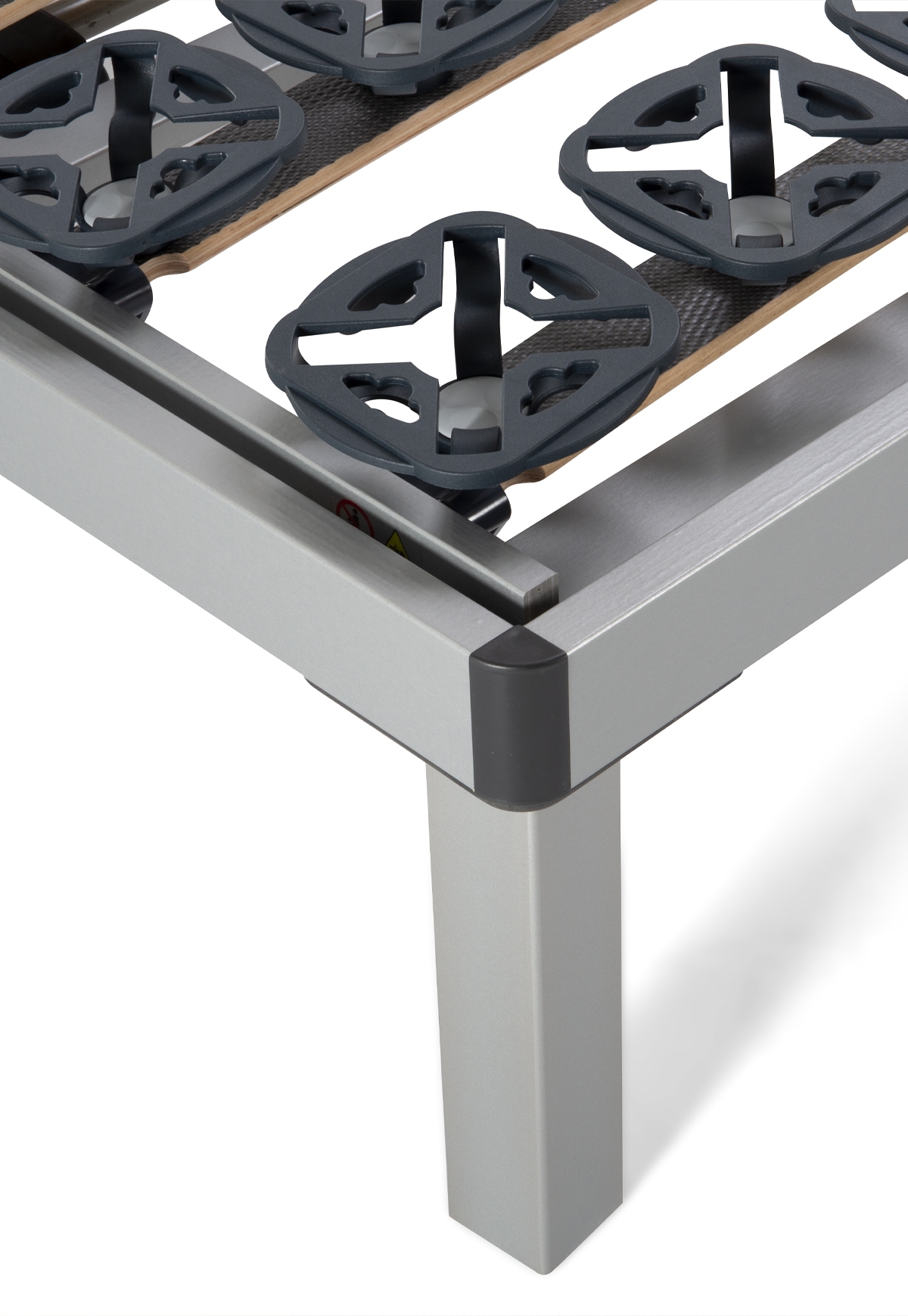 Angular plate in nylon-fiber glass: the feet are fixed to the bed frame using a special angular plate in nylon fiber glass that works also as stabilizer support.
