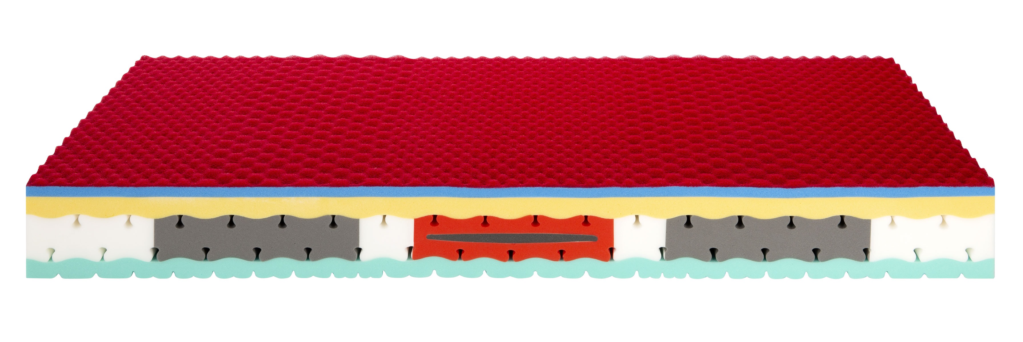 Speciale lastra che simula il comportamento del materasso a molle utilizzando materiale espanso. Un nuovo design per dormire bene. La forma a celle aperte del memory BREEZE garantisce il passaggio dell’aria libero e rapida evaporazione dell’umidità e del calore.