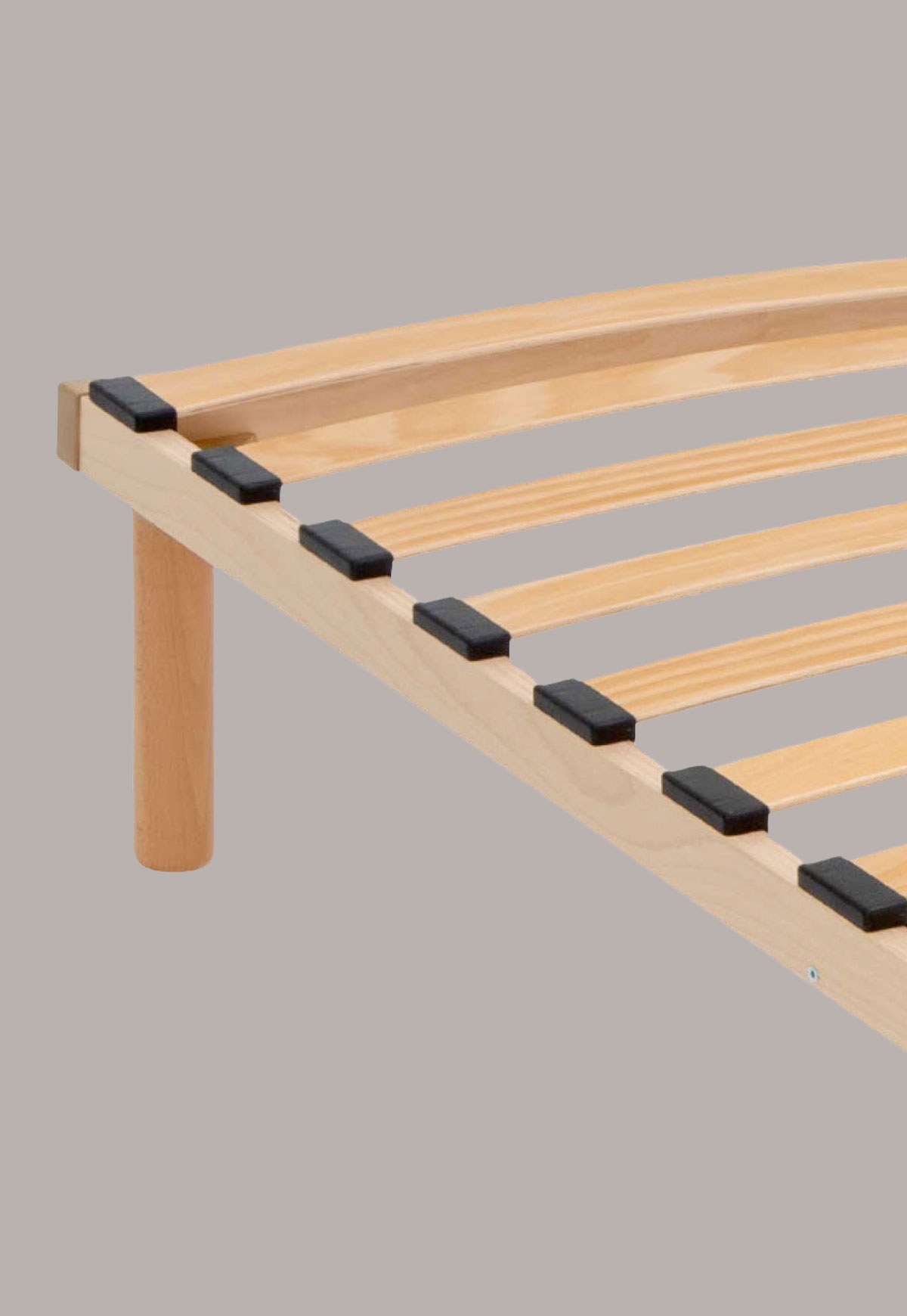 Doghe sul telaio attraverso manici di plastica per evitare rumori. Piastra angolare in nylon-fibra di vetro: i piedini sono fissati al giroletto tramite un'apposita piastra angolare in nylon-fibra di vetro che funge anche da supporto stabilizzatore.